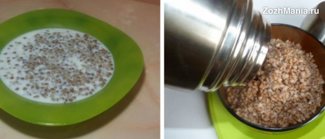 - можно использовать запаривание в термосе. Гречневая крупа смешивается с водой из расчета 1 к полутора, предварительно подогревается термос, туда наливается кипяток и немного соли. Крышка закрывается, термос сильно трясется, надо, чтобы все максимально активно перемешалось. Теперь пусть все постоит часа полтора-два. А потом, когда каша готова, туда можно добавить теплого молока;