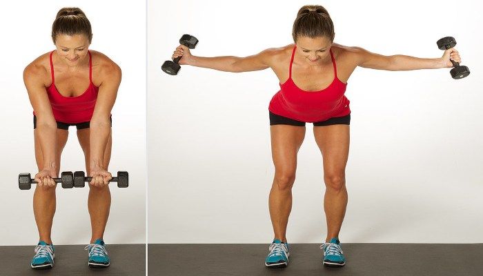 - Упражнения с гантелями: жим лежа, разведение рук с гантелями вверх и в стороны, махи с гантелями.